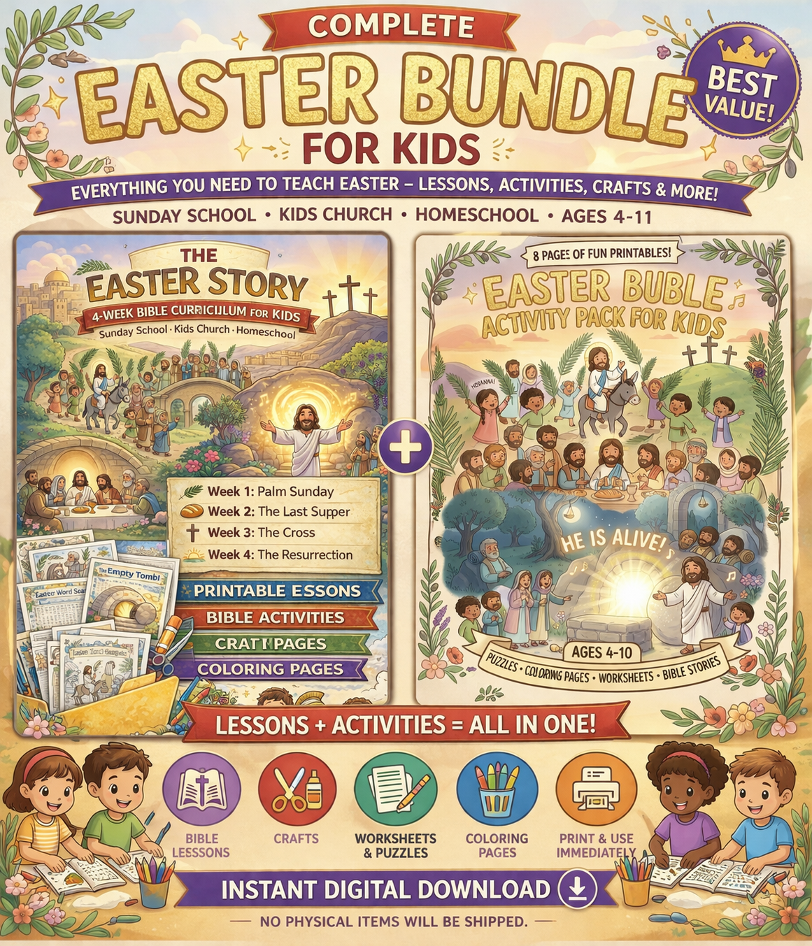 Everything you need for Easter — lessons, activities, crafts, and printables — all ready to download and teach immediately.